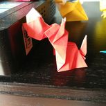 昨天刚中考完,七号出成绩,炸了…… 先折只小松狼吧, 包书皮的纸太硬,头上裂开了,打了个补丁……