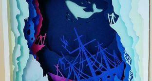 渐变色纸雕《海蓝时见鲸》