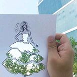 时尚插画师Shamekh Bluwi利用剪纸和街景给美女们穿上了美丽礼服