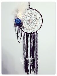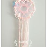 下了班,熊就到小工作室来帮我参谋起网的设计,一会用胖手给我别个铃铛,一会又拿着丝带笔画,一个大男人做这些真让人感觉很好笑。很幸运,有这么有艺术审美,并且做什么事都支持我的男人,让我可以不畏风雨,继续前行。第一个人鱼公主捕梦网是两个人的点子。