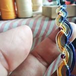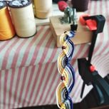 个人感受:最好还是别再晚上费眼睛编绳子了,白天光线更好一些。(上半截晚上编的,下半截白天编的,明显的感觉白天编的更整齐,更紧致)
