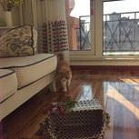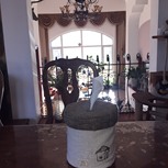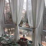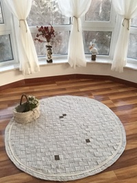 历时两天完成了一件作品,直径1.4米经废弃窗帘改造而成。