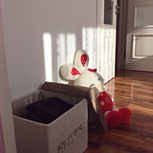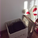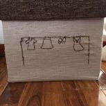 窗帘废布与纸盒做成的40X40X40一款衣物收纳筐