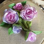 原创作品:紫色浪漫,手工制作的緞帶玫瑰配上自己染色的叶子。