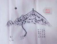 手绘 水墨画 下山