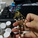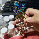 扶摇同款,烧蓝孔雀。本来挺好的,背面添了一个花片,愿意是遮挡铜丝,结果没放好位置,翻到正面一看,反而有点不对了,还原度没有那么高了。真是有点画蛇添足的感觉😂