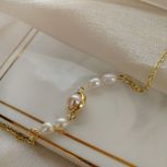 晚上熬夜又做了一条珍珠手链,使用天然淡水珍珠,配上包金的配件,有点小精致的感觉。