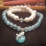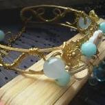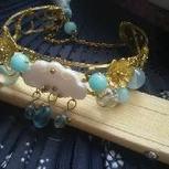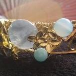 绕线镯子,用料:铜线,贝壳,天河石,玛瑙,白水晶
