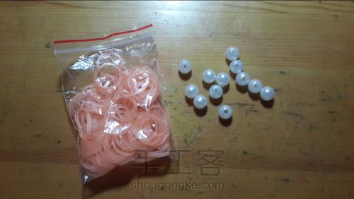 把皮筋还有珍珠准备好,注意!珍珠一定要带孔!