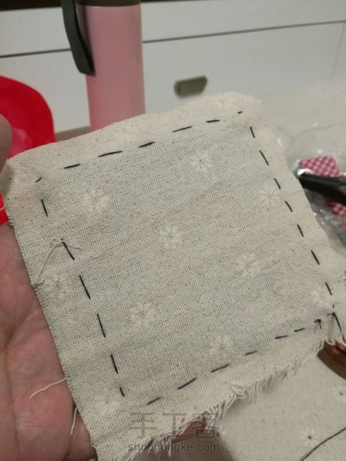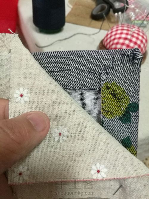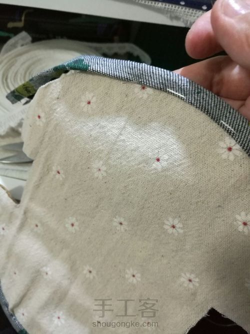 找了一块同样的底布包边,先手缝一下固定,然后再车缝