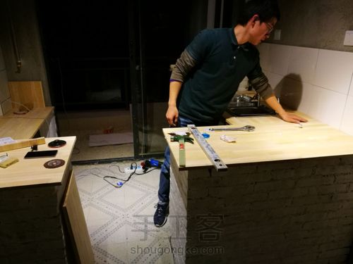 指接板,虽然看着还行,现在可是超级后悔,宁愿买那种做家具的合成板,更省钱些还,我们做饭比较简单,用这木板也够了,合成板一张才175,就可以解决台面了其实,不过尽量根据自己做饭习惯来吧!