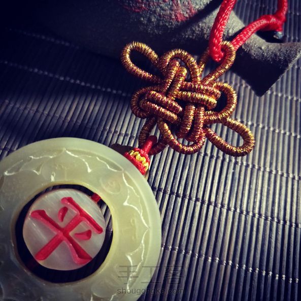 再做平结线圈一个,下面加朱砂珠子
