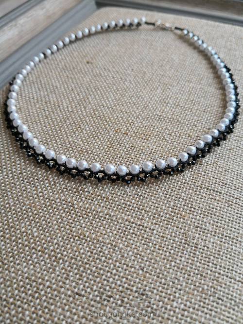 :| 黑色尖晶2mm | 白色贝珠4mm |