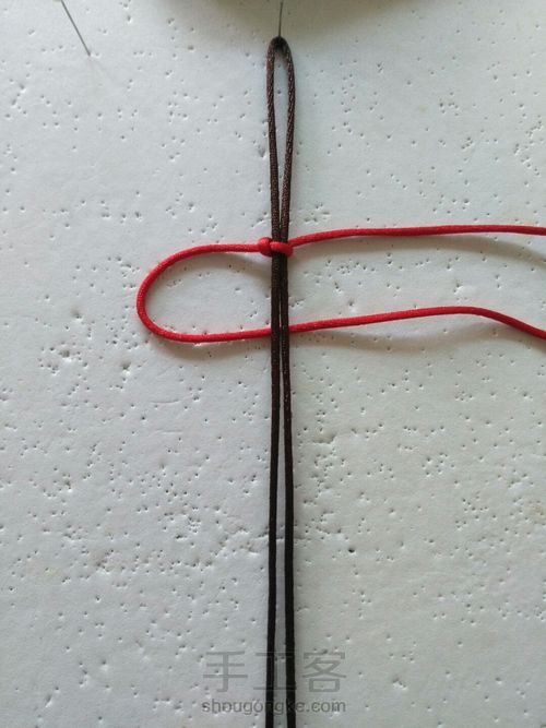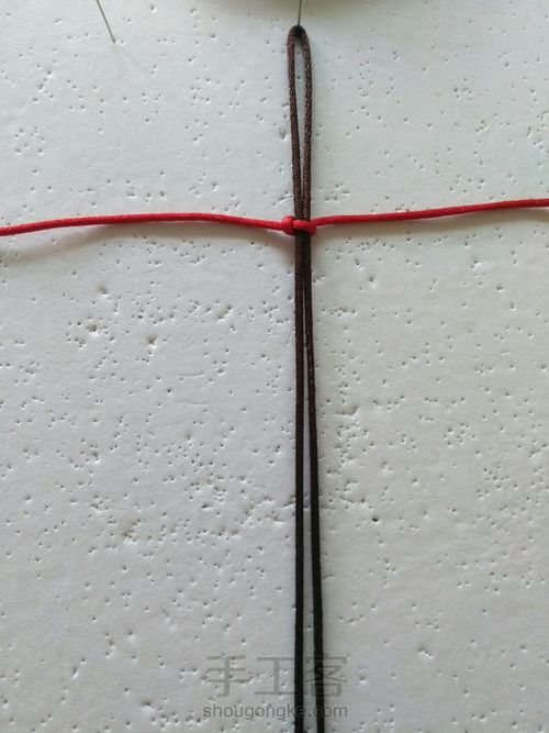 左边红色线从咖啡色线下穿过,形成一个圈圈如图。