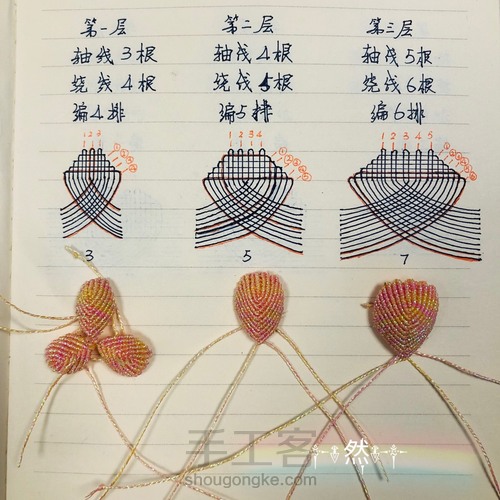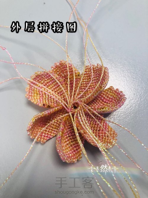 按照图示编花瓣,橘色标示线头留着,其余减掉