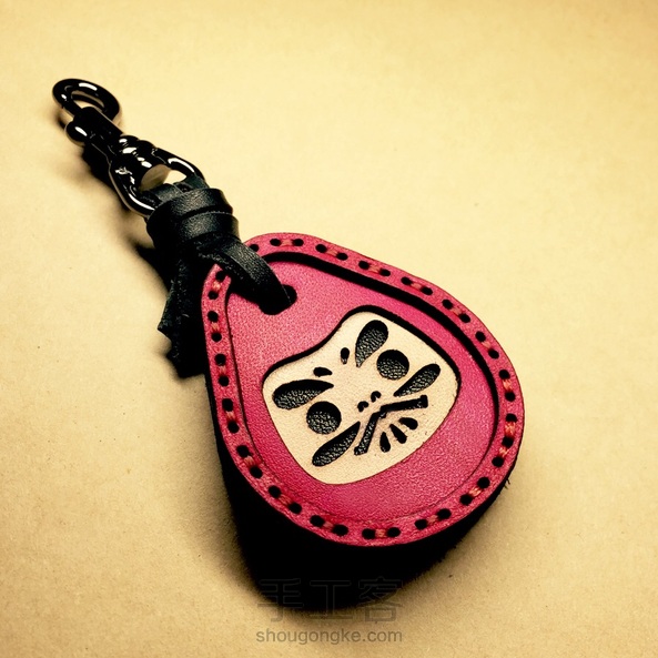藤泽桃手工出品,MACH风格皮艺 钥匙扣/门禁牌--达摩