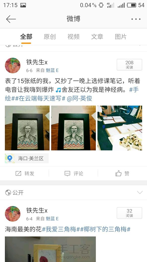 希望大家关注下我的wb(铁先生x),里面有好多自己做的手工、画、摄影照片。让我也涨涨那可怜的粉丝数。🙏