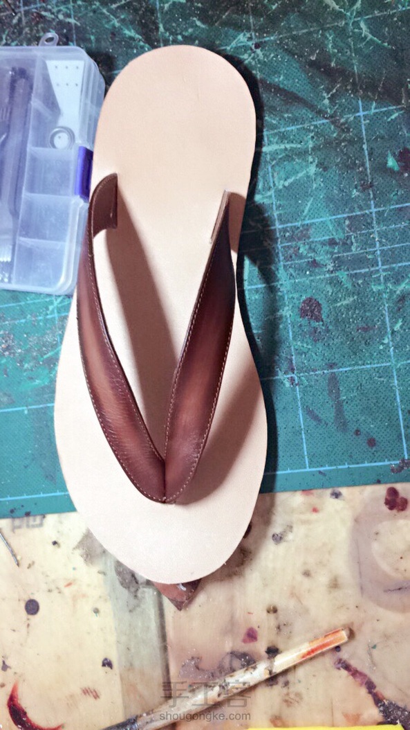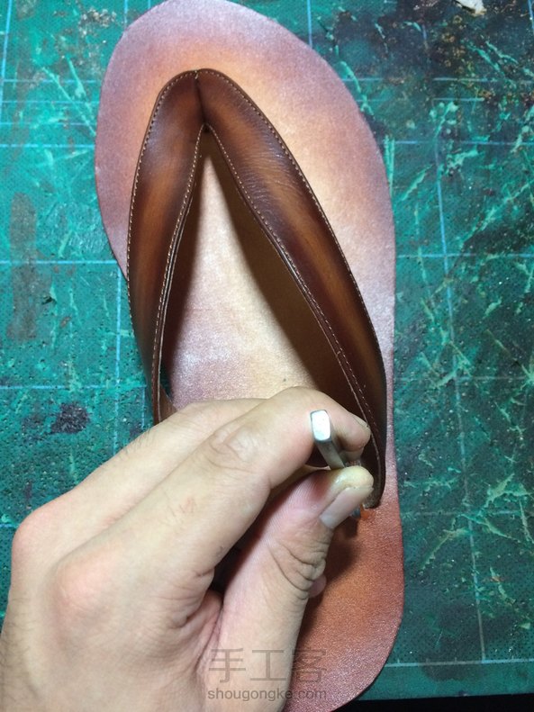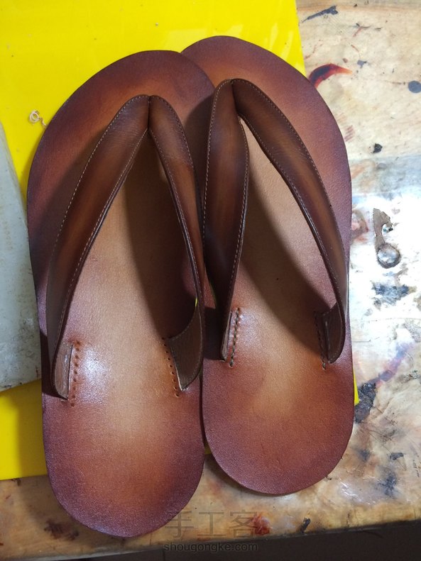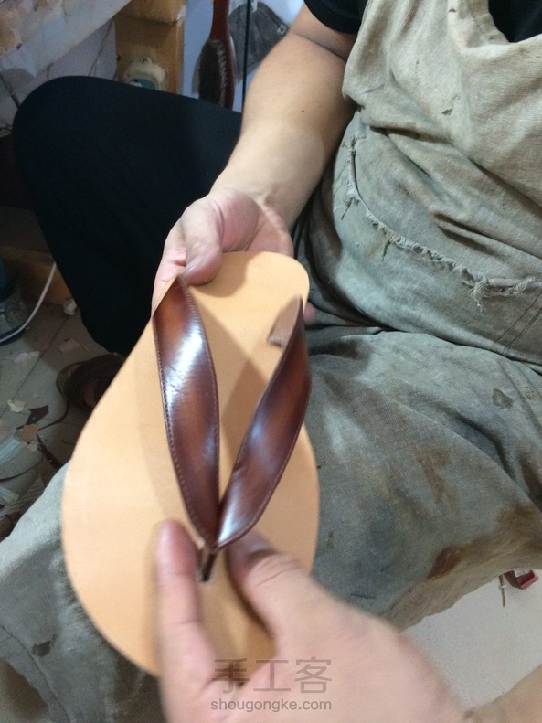 手缝植鞣革皮拖,还手工擦色了呦!