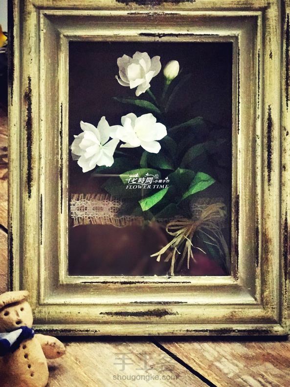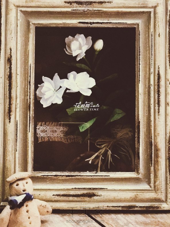不多的几朵小茉莉,与复古的相框很搭!~~一上午就装裱了个框!