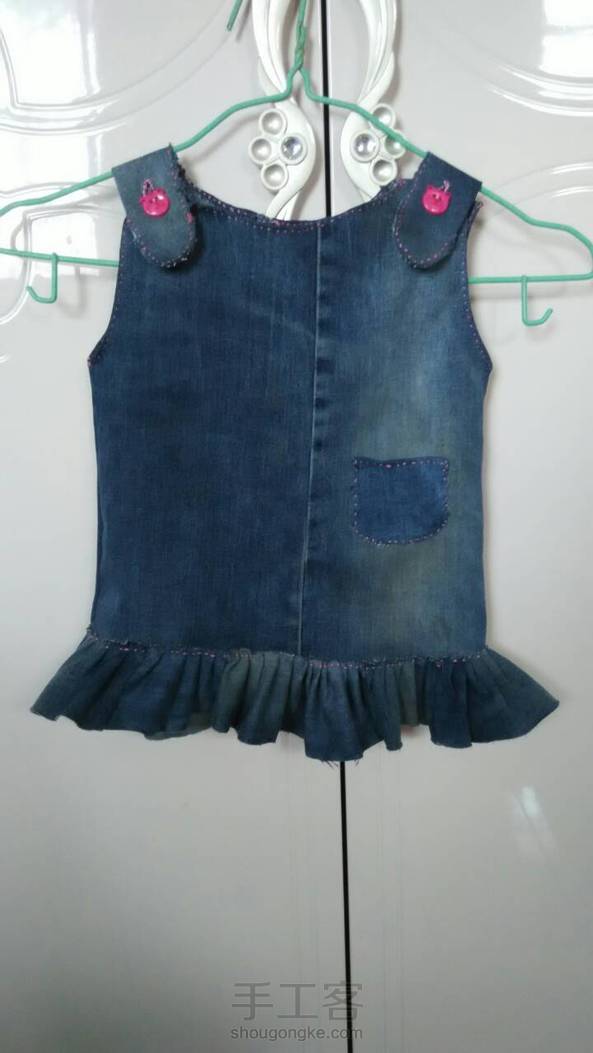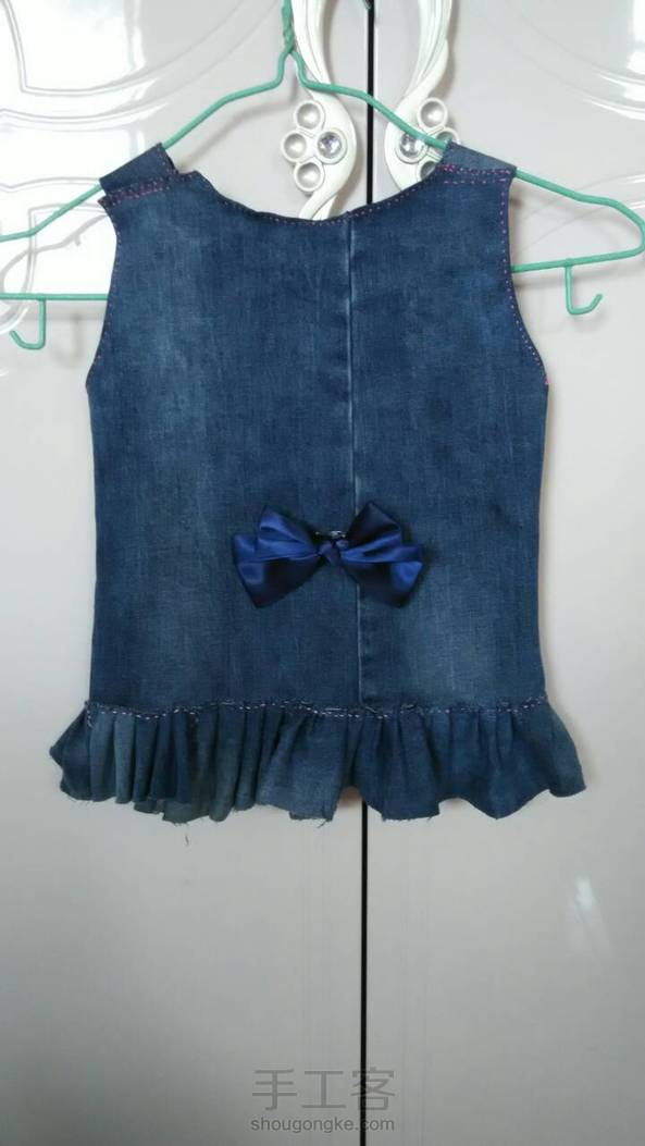今天刚做的小牛仔裙子,利用老公的不穿的裤子做的。只用了剪刀和一根针,线还是之前十字绣剩下的。没有缝纫机做的有点慢,一天多才做好。希望夏天来了给宝宝穿上