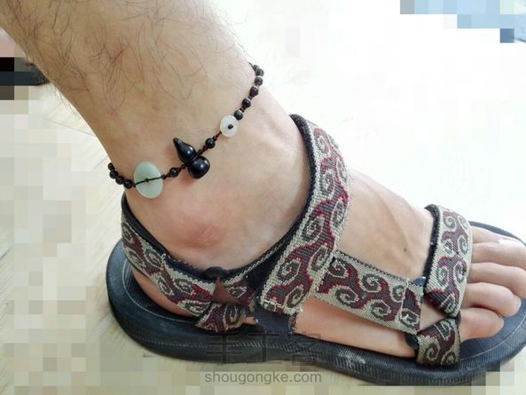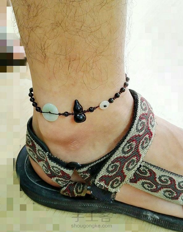 黑曜石平安玉扣男士避邪脚链!😎