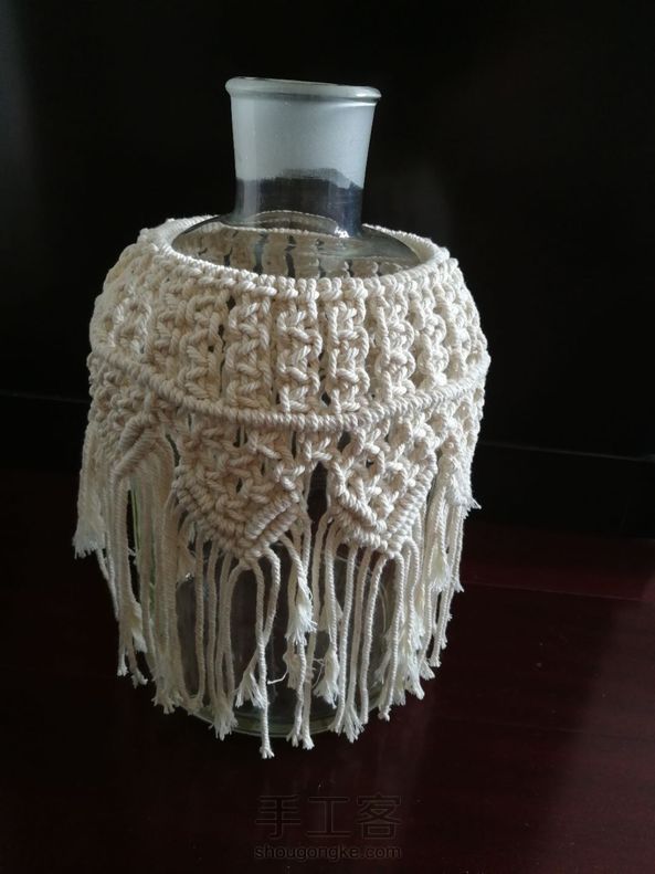 余线做了个大花瓶的罩子,有些到最后显短了。取下来一看,貌似可以做小裙子也可以做小披肩来用呢😄