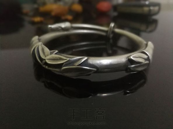 纯手工富贵竹纯银手镯竹节手镯节节高s999银镯 只做真品,富贵竹手工纯银手镯。 未出土时先有节,及凌云处尚虚心。 竹子寓意生命顽强,青春永驻,虚怀若谷, 正直清高,青秀俊逸。 竹报平安,祝福平安吉祥,荣华富贵,爱情美满。 重70克。 赠送纯手工编织钥匙链