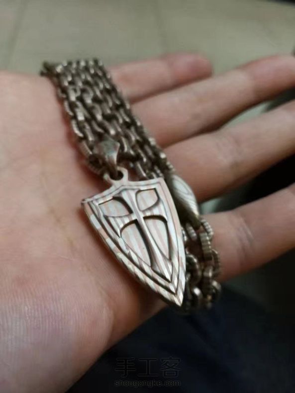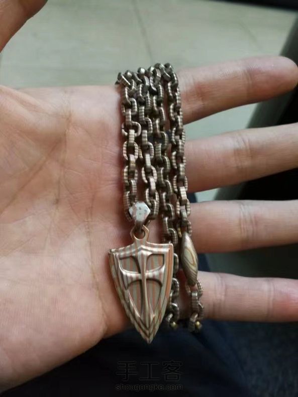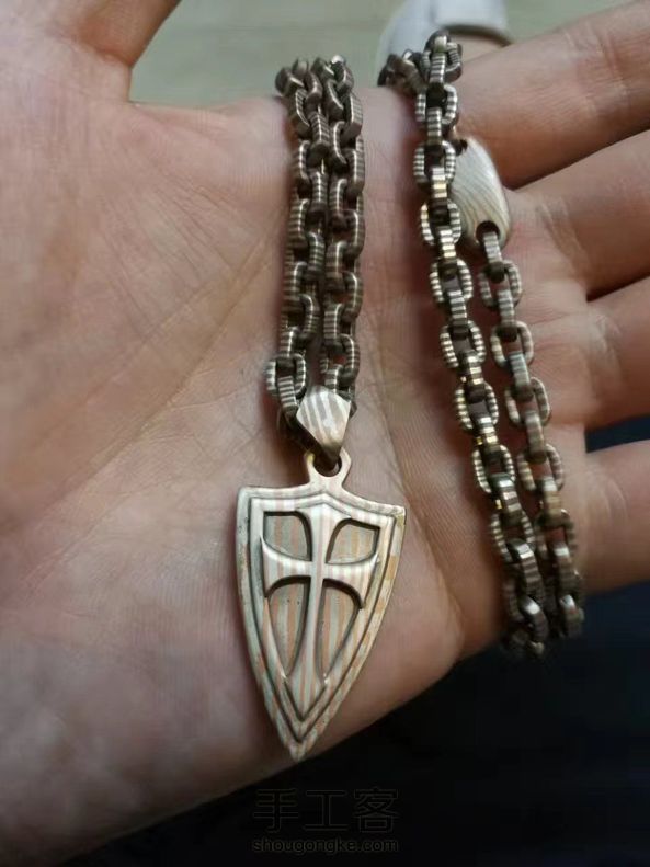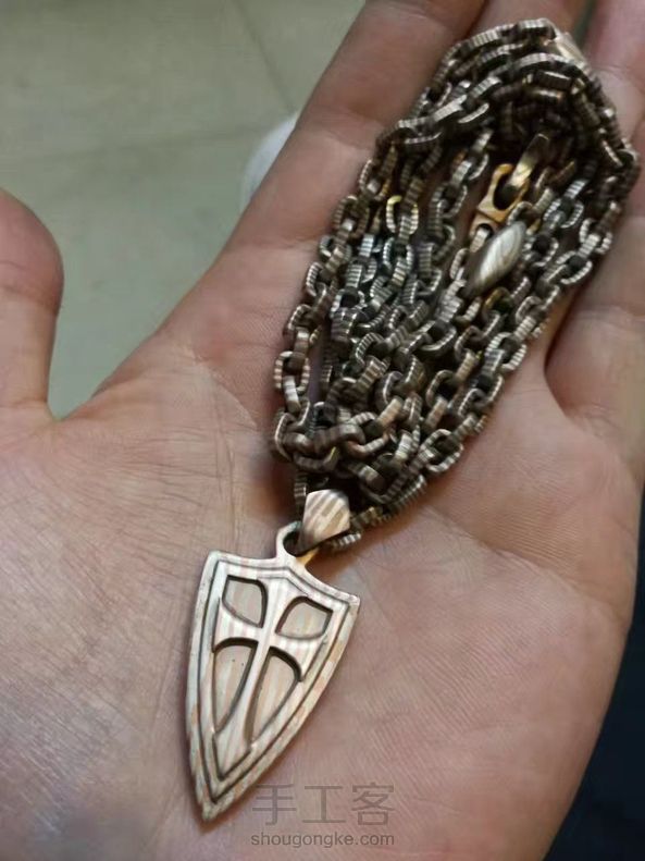 王朝手作促销木纹金项链steel flame 钢火链 十字军盾牌吊坠 手工