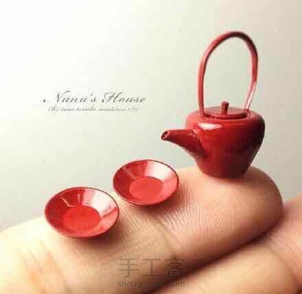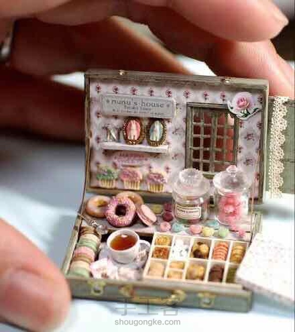 (转载网络)某手工达人用粘土、树脂等精雕细刻,制成十二分之一大小的点心、茶具、小宝箱等,个个可爱至极……