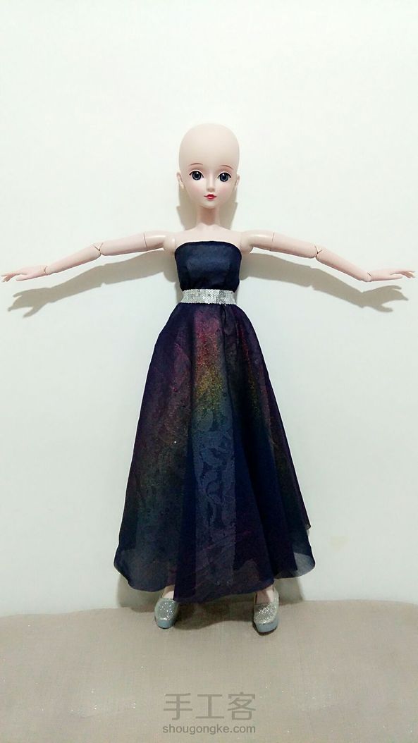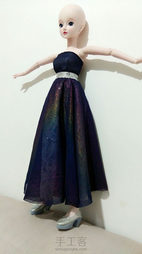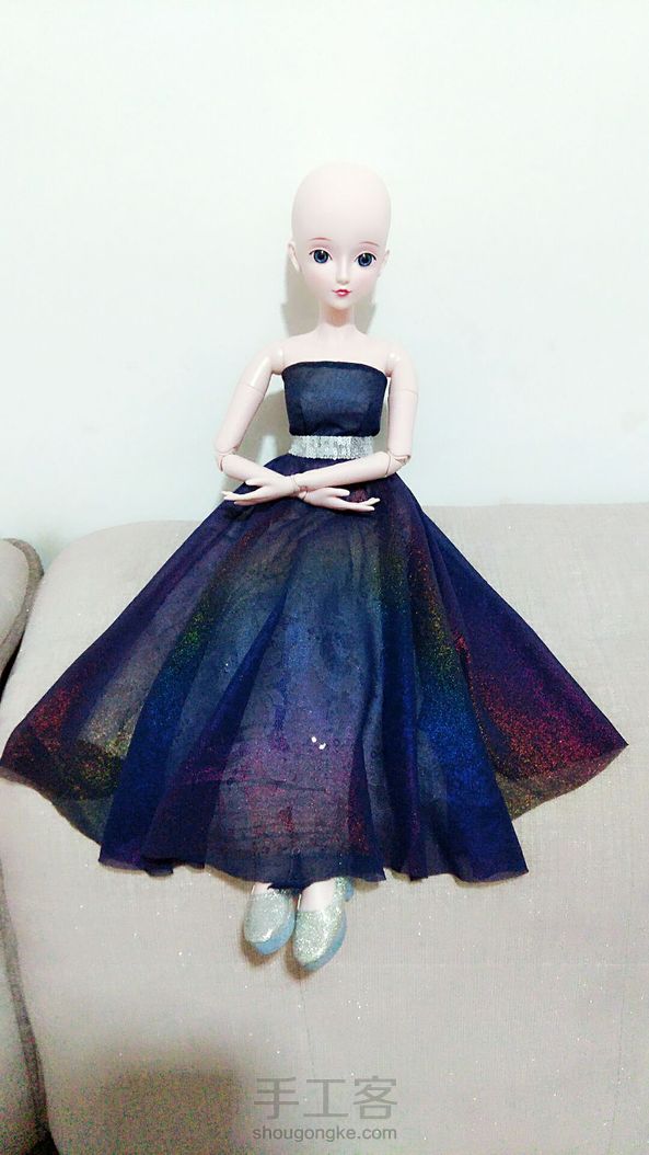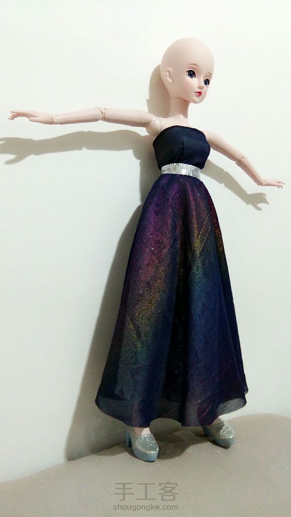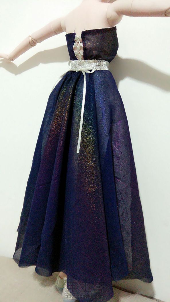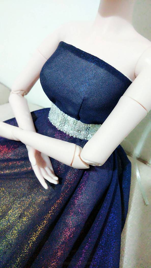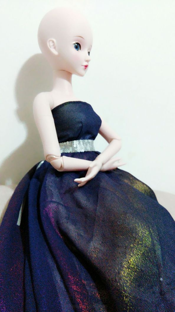 (゚ロ゚)!!这块雪纺本身是老板送的添头~结果没想到效果这么好!!!我的妈呀~美哭我~没找到合适的假发就索性光头~我得为这件衣服给她重新做顶假毛了~衬裙换蓝色或者白色雪纺效果可能会更好~明天再改改试试~鞋子换水晶鞋怎么样?