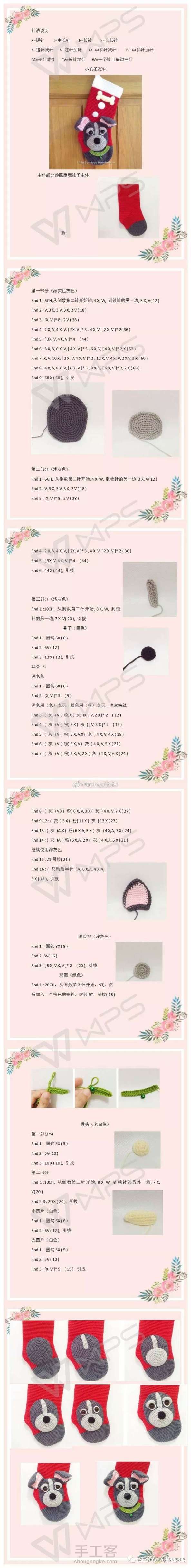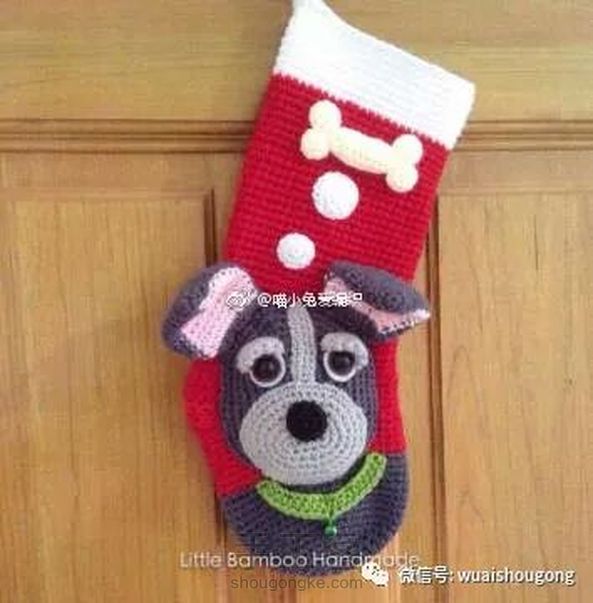 萌狗圣诞袜图解,这一款,大红色更是应景啦,可爱的小狗在想着美美哒骨头,哈哈,我得备一只去,看看能收到什么圣诞礼物~(非原著,转发)感谢分享