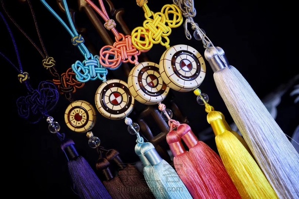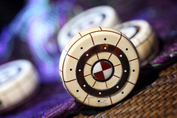 ☯️「太极鼓」~传统工艺技术镶嵌,主材质为猛犸象牙,褐色部分材质为玳瑁,红色部分材质为鹤顶红,边缘处以铜钉镶铆,孔道部位以铜管天地贯穿,整体图案紧凑,细节处理到位,可结合个人喜好做背云,吊坠,钥匙挂,车挂……