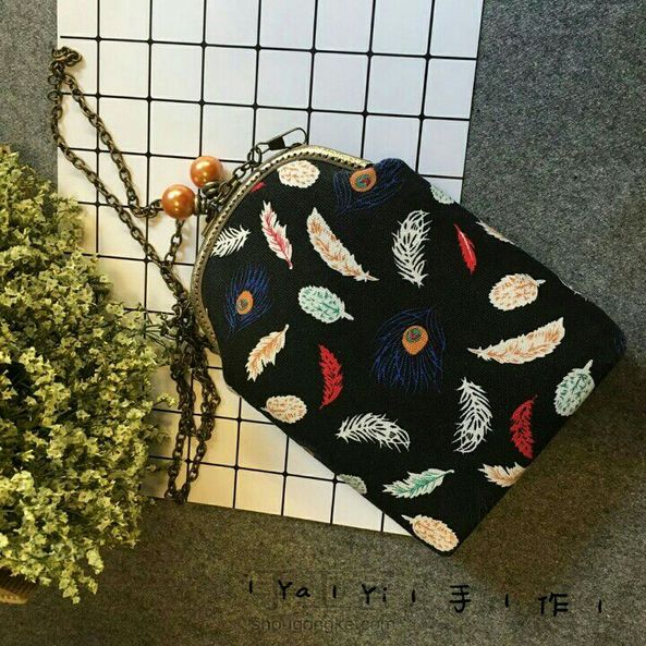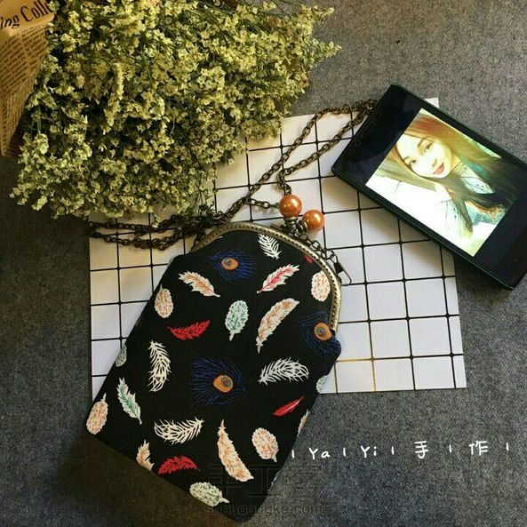 |手作|彩色羽毛帆布手机小包