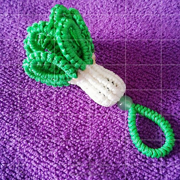 《我用72号玉线编的。在雀头那两截里,哪一根做轴线,哪一根做绕线?我是按照短线做轴,长线做绕来做的,最后的扣眼部分,我觉得线不太够,但是没有了,我就结尾了,给大家做个参考》
