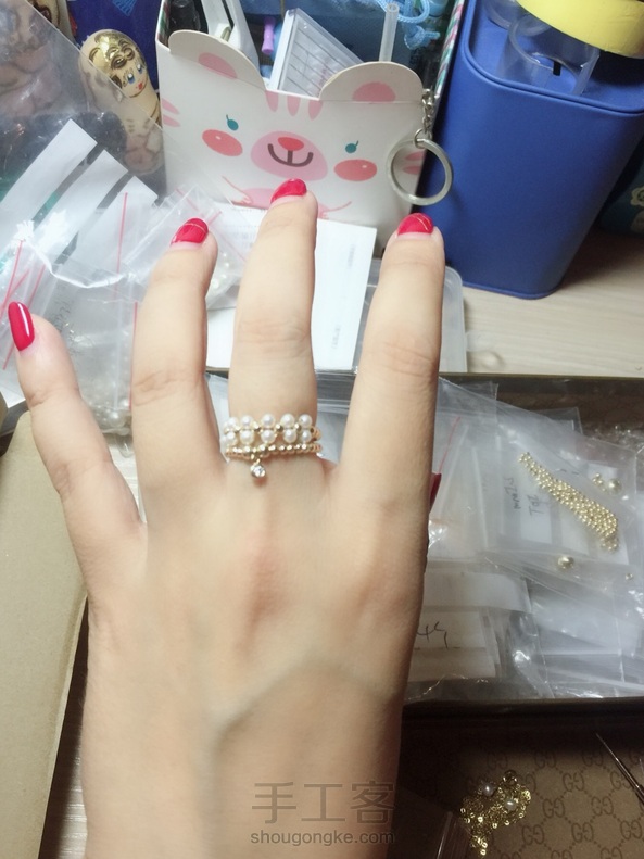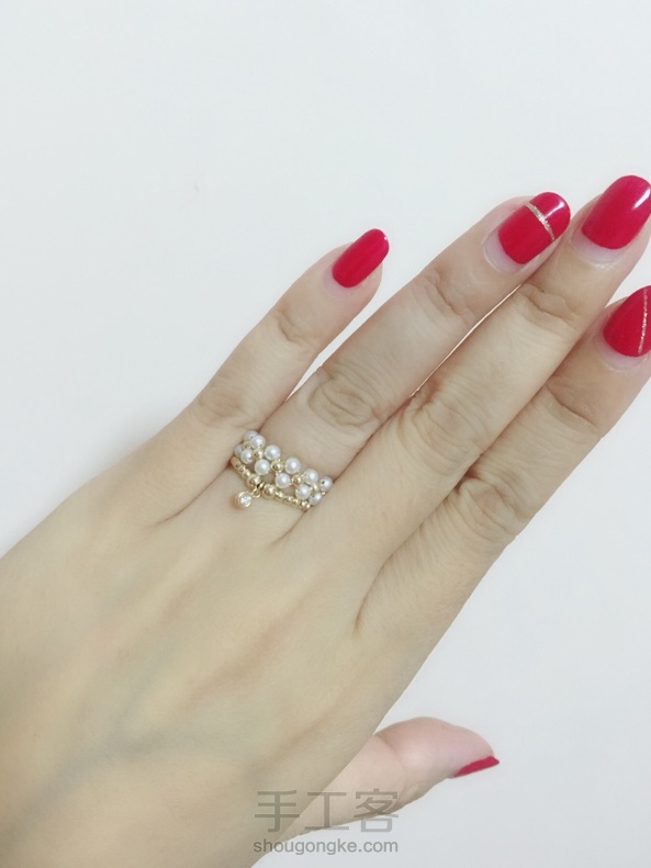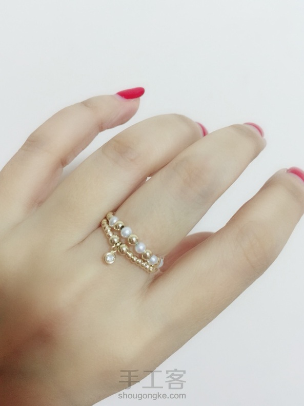 做了个挂锆石的节奏,正好和珍珠戒指做成套戒,叠戴效果挺好~~