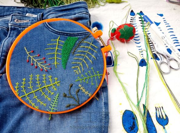 一直想在自己衣服裤子上绣点东西的 又一直找不到合适的图案 但是呀,想做就要先动手呀 看,这不是挺好的嘛