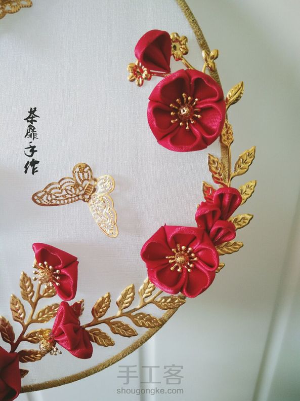《很漂亮,感谢老师分享的教程,刚开始线选错了用的扁蜡线,导致花瓣上面有很多小孔,之后补救了一下串了一些珠子,成品很喜欢。》