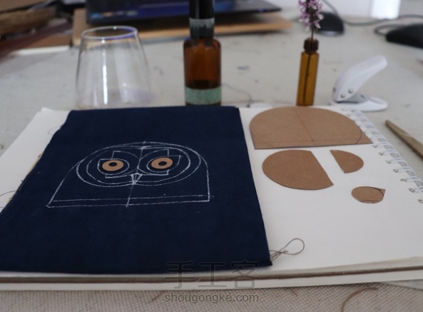 给赟姐姐做猫头鹰包包 一个养猫头鹰等各种奇怪生物的酷姐姐 为了画这只猫头鹰 找了各种东西 来画圆形 看来我是很需要一个圆规呀