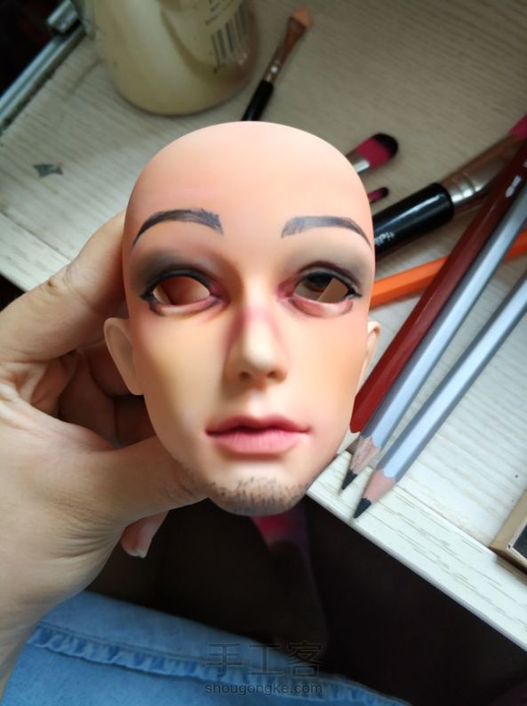 貌似我永远学不会画眉毛!为了能和我的叔身体配的上!涂了好厚的颜色粉底