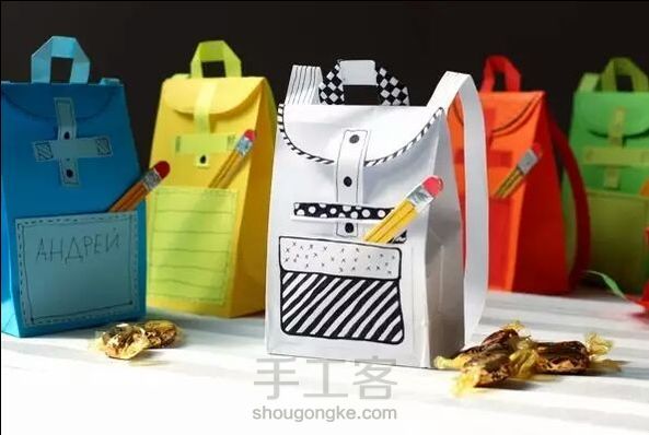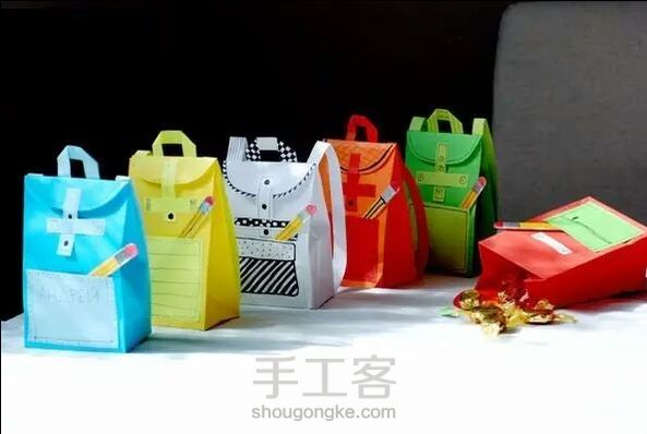 (转)糖果小书包~~材料:准备材料:剪刀,卡纸,胶水