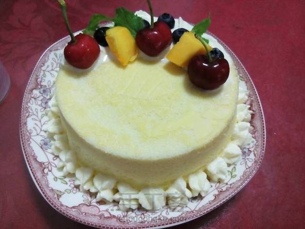 第一次做生日蛋糕,成功了!太开心了,轻乳酪生日蛋糕,简易裱花,水果点缀,嫩黄糕体,简单华丽,超爱……