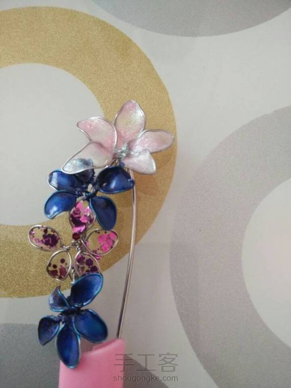 下午没事做的甲油花!一个手镯,一个胸针!