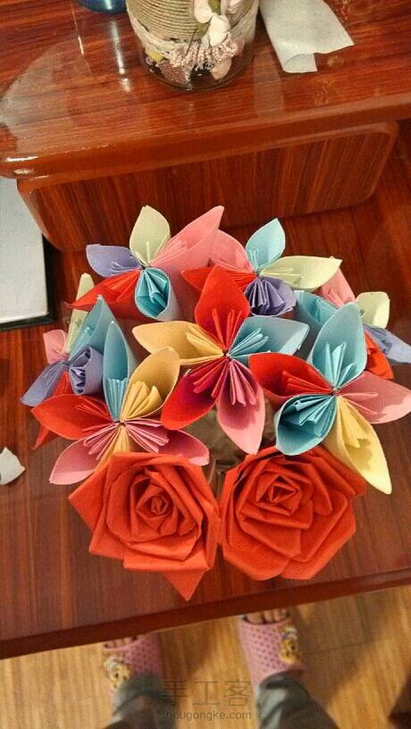 彩纸玫瑰花,废纸变纸相框
