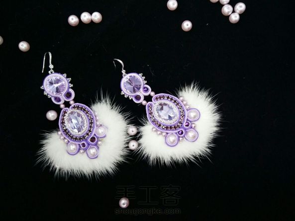soutache皮草耳环