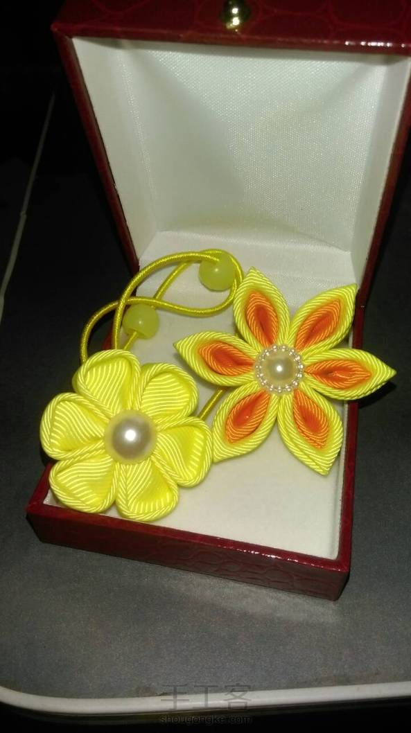 《很漂亮,感谢老师分享的教程,刚开始线选错了用的扁蜡线,导致花瓣上面有很多小孔,之后补救了一下串了一些珠子,成品很喜欢。》