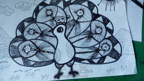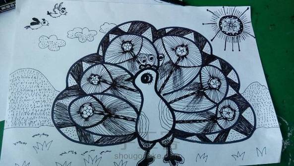 下午上美术课,线描,孔雀。