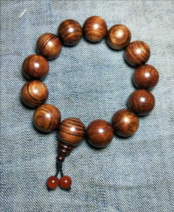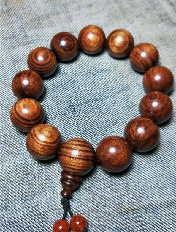 纯手工的,小叶黄花梨,两颗玛瑙珠。