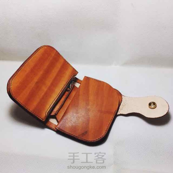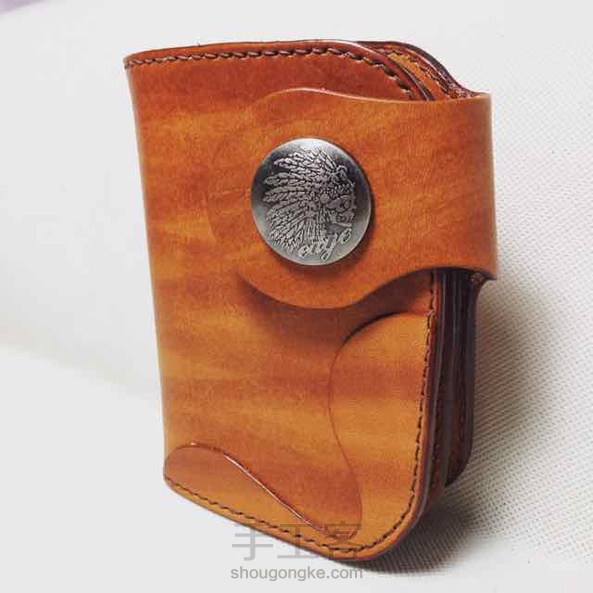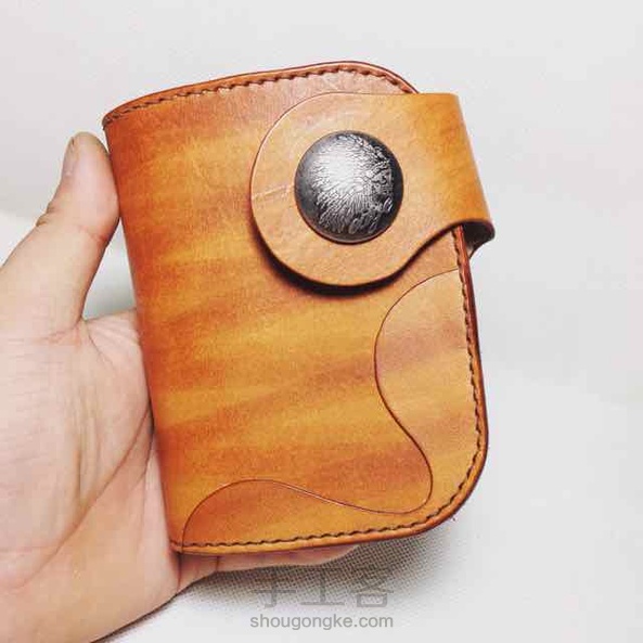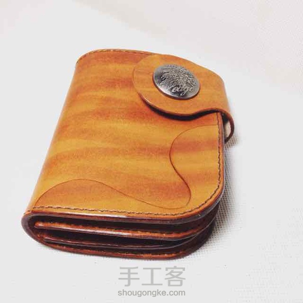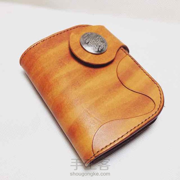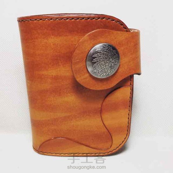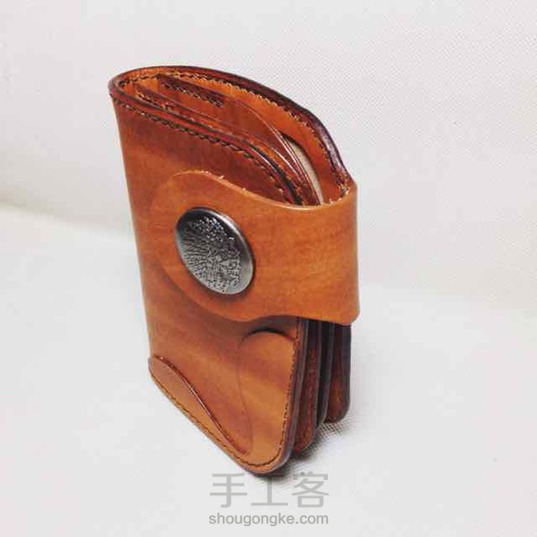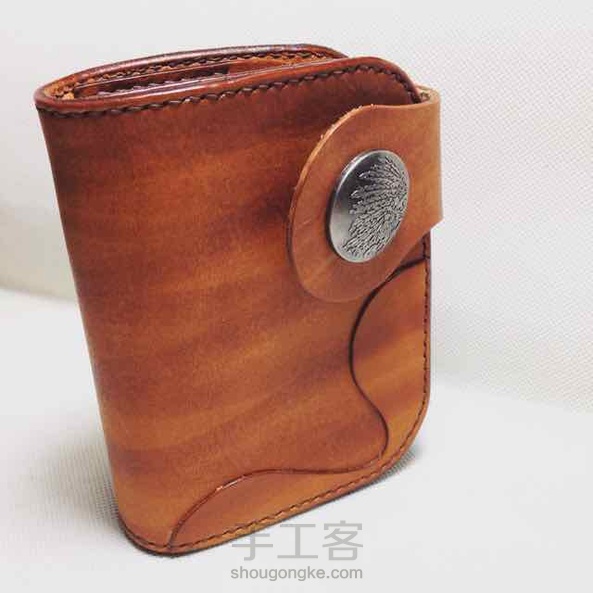 棕色染色植鞣革复古机车中款钱包