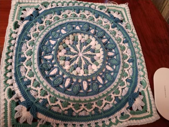 目前进度。因为手上的图解有一些错漏和说得不太清楚的地方,多费了一些力气。某宝版图解的朋友们注意我图上最后一圈勾完39组短针+长短针后,再钩一个短针,再在上一圈的转角锁针后山勾短针+锁针+短针。不然后面几圈针数不够。