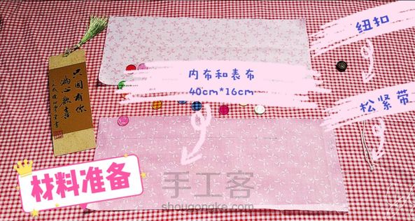 废话不多说,我们开始动手吧~ (这是一篇在咳嗽中完成的悲愤之作。) 材料 准备 A……布料2块(40cm*16cm) (珊珊老师同款:粉色为表布,白色为内布)